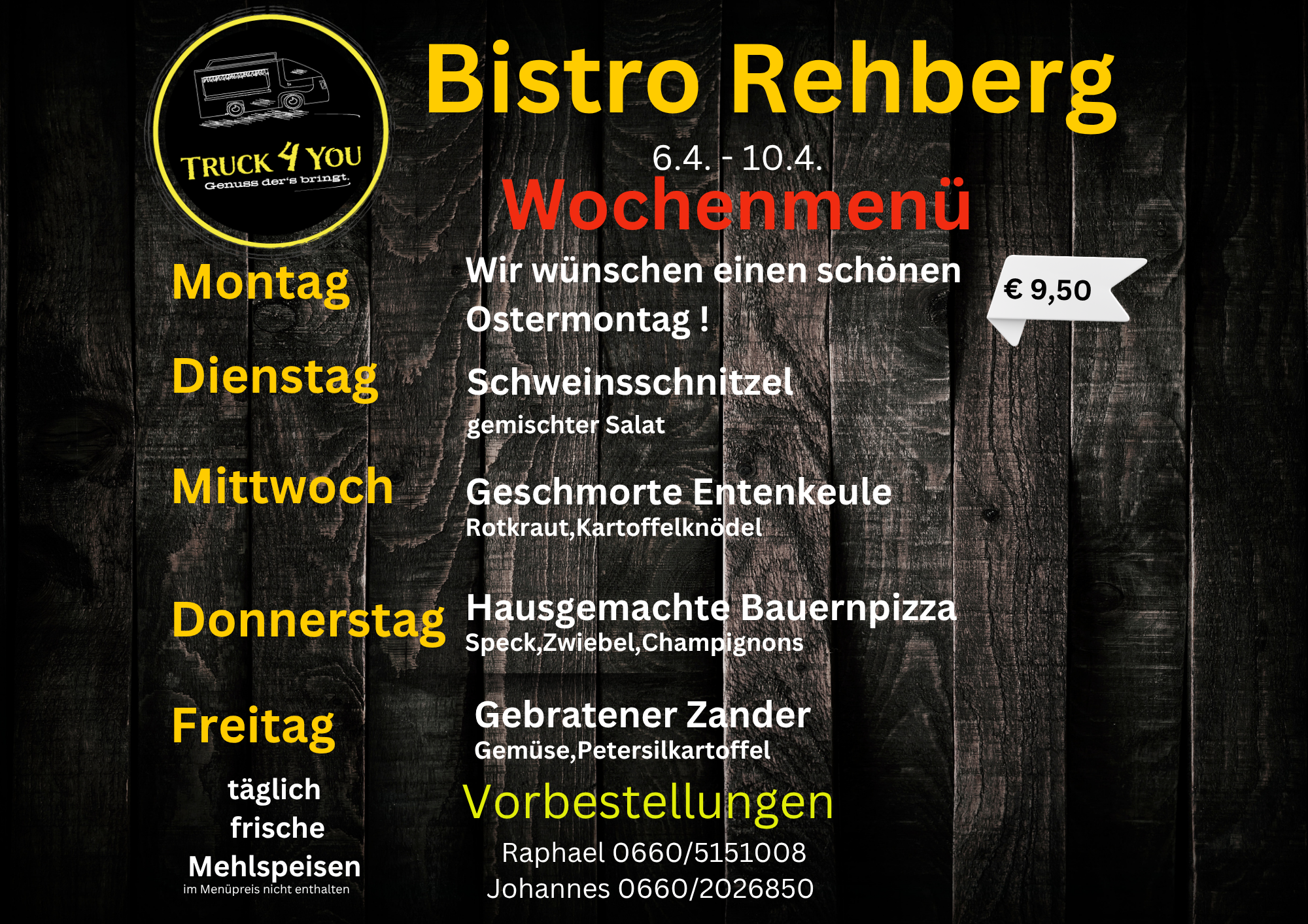Im Bistro Rehberg, Mühlhofstrasse 1, erwartet Sie ein tolles Ambiente, ausgesuchte Weine und unsere Truck4 You Spezialitäten